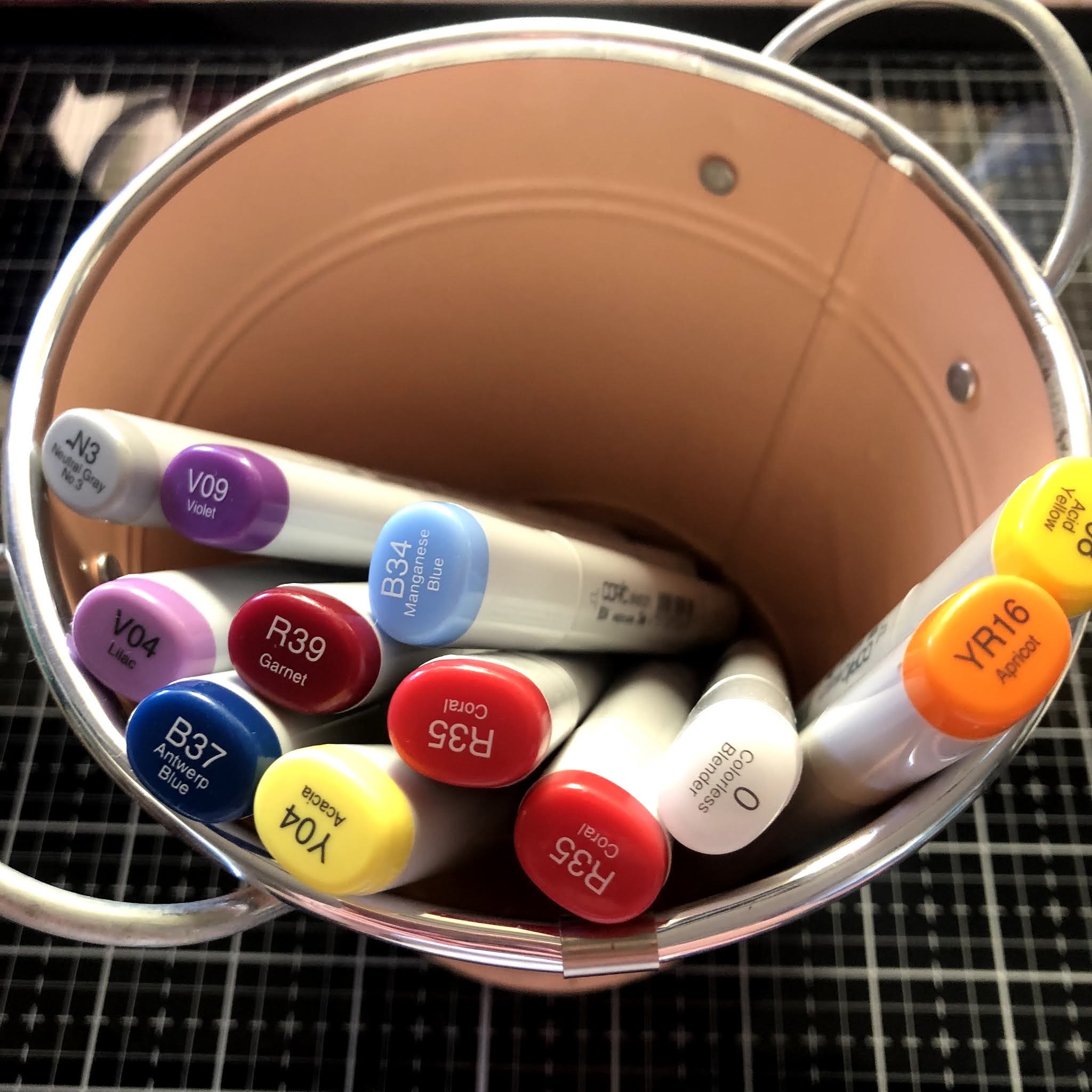 I continued using the pink blend from above - R81, R83, R85 and coloured up all the flowers on the image, this is my most used pink blend of markers and one of the first ever blends of markers I used.