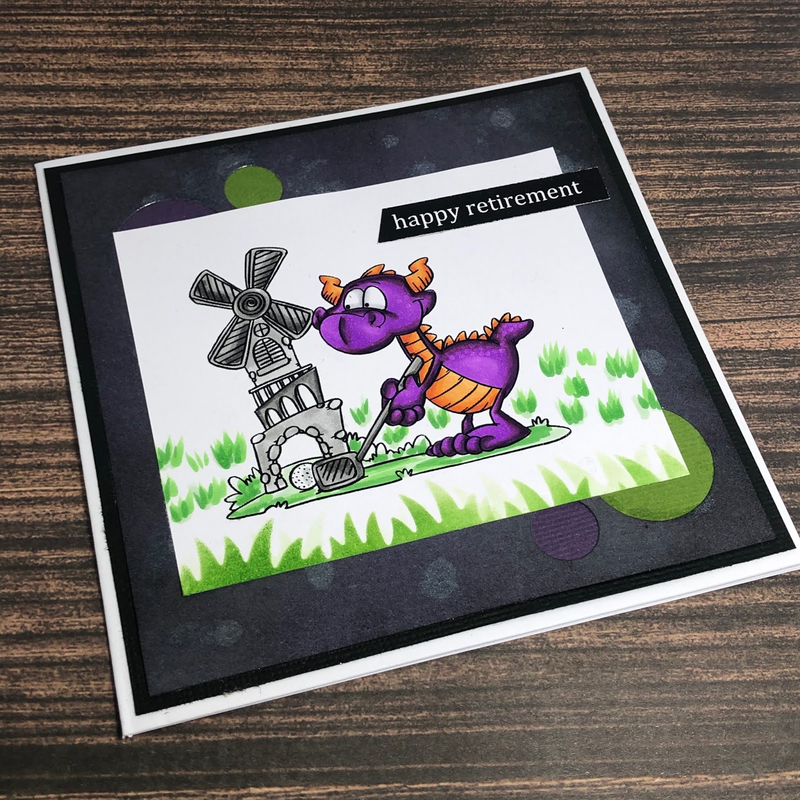 Today I am sharing with you a card I created for Whimsy Stamps using a Digital Stamp called Dragon Golf from the Dustin Pike Collection.