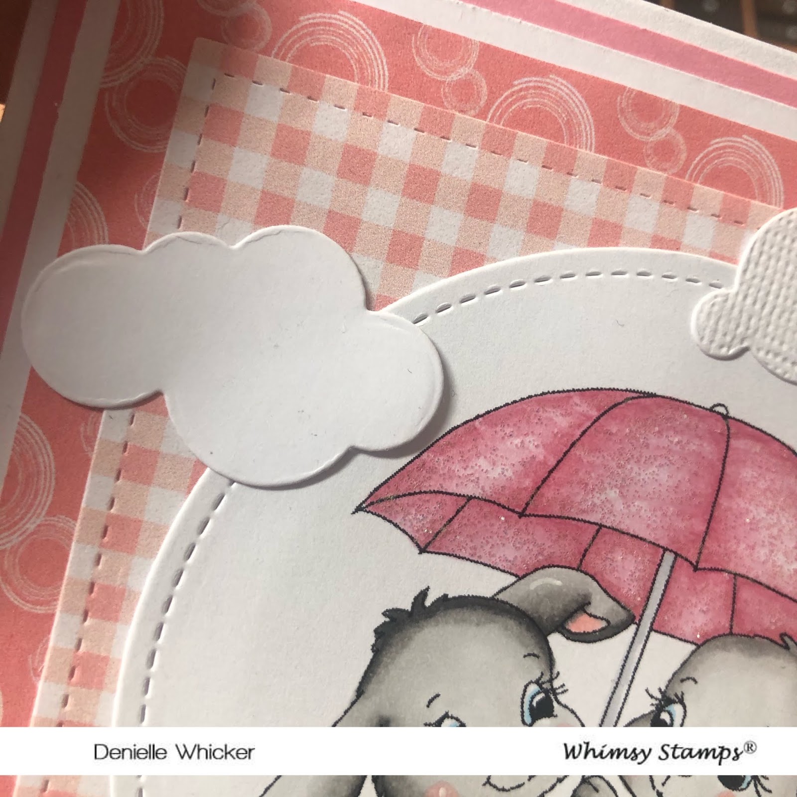 I printed some papers from the Sweetness Digital Paper Set, also from Whimsy Stamps, I printed one of the flower papers using GreyScale and the rest in colour. I trimmed down the pink flower paper using a Lawn Fawn Stitched Circle die. I adhered the layers to some pink copy paper using Scotch ATG.